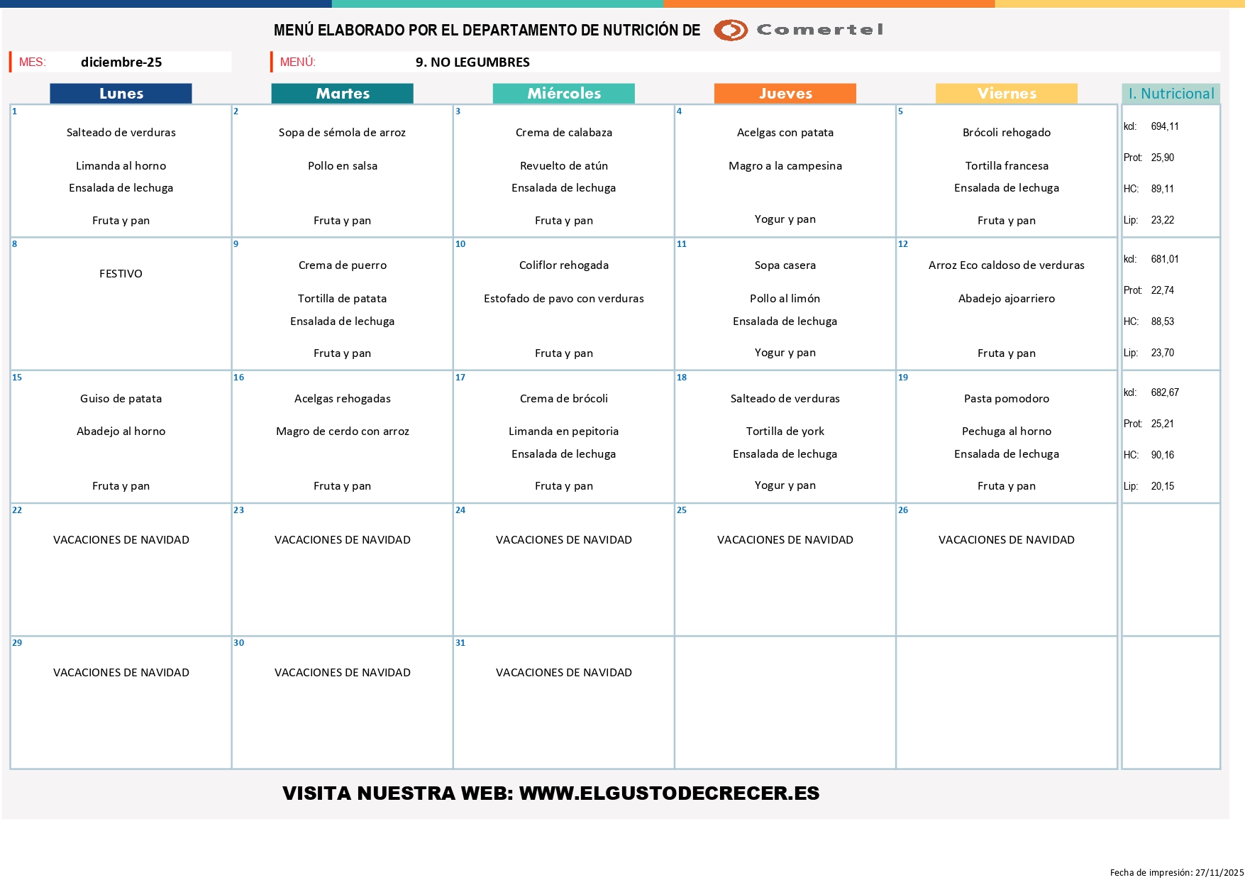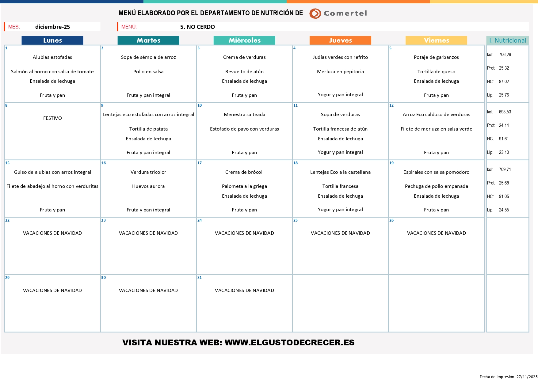 La empresa que nos suministra la comida a partir del 1 de abril de 2025 es Comertel Residencias S.L. (Grupo Aramark).